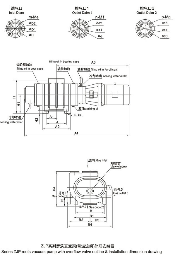 | Model | A | A1 | A2 | A3 | B | B1 | B2 | B3 | H | H1 | H2 | H3 | D | D1 | D2 | d | d1 | d2 | d3 | d4 | d5 | m | n | p | e | f | g | k | A4 | B4 | H4 |