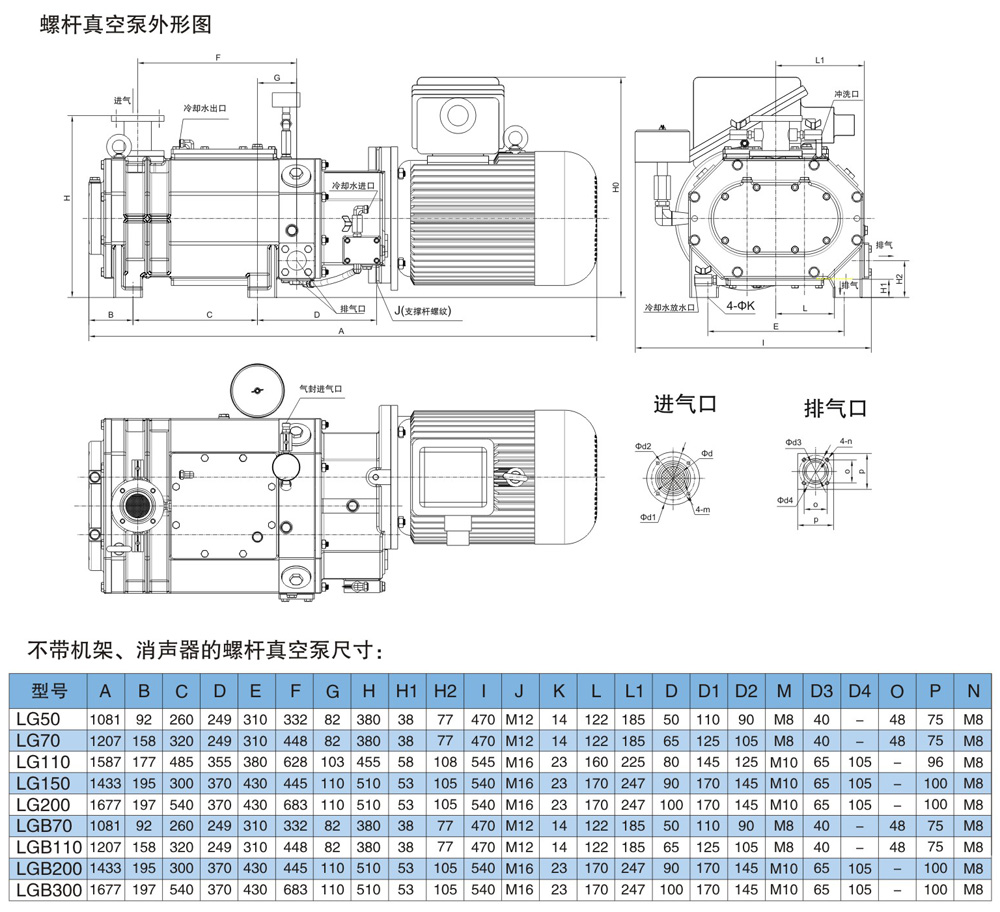 LG series 4 screw pump rotor clearance is relatively small, the ultimate vacuum degree is higher, which is suitable for semiconductor and electronic industry in the workplace clean without oil; LGH series screw pump rotor gap is relatively large, limit vacuum degree is relatively low, the pump cavity and the rotor surface plating layer or PTFE coatings are available, can pumping a large amount of water vapor and corrosive medium, suitable for work in chemical, pharmaceutical and other working environment is bad.