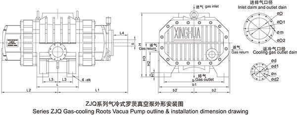 當(dāng)泵單獨(dú)使用時(shí),可直接利用排氣口低溫的大氣返回泵內(nèi)冷卻而不使用冷卻器,大泵可獲得約130百帕的極限壓力。