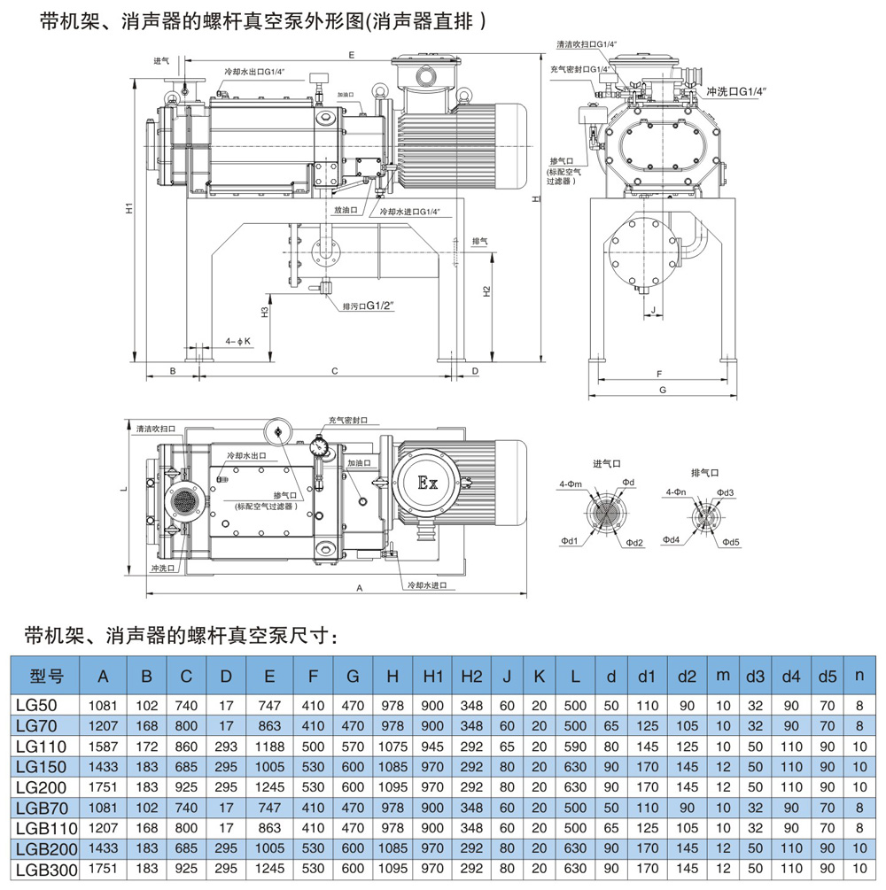 4、LG系列螺桿泵轉(zhuǎn)子間隙相對(duì)較小,極限真空度更高,適用于半導(dǎo)體、電子工業(yè)中要求無(wú)油潔凈的工作場(chǎng)合;LGH系列螺桿泵轉(zhuǎn)子間隙相對(duì)較大,極限真空度相對(duì)低一些,泵腔及轉(zhuǎn)子表面有鍍鎳層或PTFE涂層可供選擇,可抽除大量水蒸氣及多種腐蝕性介質(zhì),適用于化工、制藥等工作環(huán)境較為惡劣的工作場(chǎng)合。