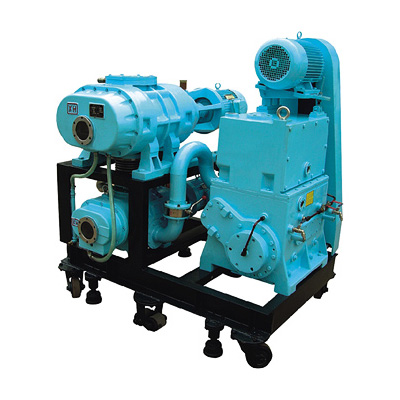 羅茨滑閥真空機組是由普通羅茨泵為主泵、滑閥真空泵為前級泵串聯(lián)組成的真空機組。通過真空繼電器或電接點壓力表,來實現(xiàn)羅茨泵滑閥泵的自動啟閉,自動過載保護。整套機組安裝在一個機架上,配以管道、閥門、電器操作控制箱、冷卻水管系統(tǒng)。機組結(jié)構(gòu)緊湊,使用方便。根據(jù)被抽真空系統(tǒng)的大小及極限壓力的不同,真空機組各泵之間的名義抽速之比一般在4:至10:1之間,前者較后者適用于較大真空系統(tǒng)及長時間在較低入口壓力或極限真空情況下工作。本系列機組為了防止滑閥泵停機時返油,在前級進口管道上裝有電磁充氣閥,其動作與前級泵電動機實現(xiàn)聯(lián)動,當滑閥泵停泵前,向泵口充氣,確;y泵內(nèi)的真空油返回到油箱內(nèi),同時防止真空系統(tǒng)不受真空油污染。